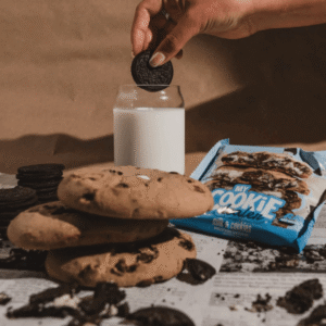 Galleta proteica con sabor a leche y galletas: la fusión perfecta de un clásico entrañable con un toque saludable. Cada galleta contiene 25 g de proteína de alta calidad, ofreciendo una alternativa nutritiva sin sacrificar el sabor. No se trata de un snack proteico cualquiera; es una deliciosa reinvención de la combinación favorita de todos. El sabor familiar y reconfortante de la leche y las galletas se percibe en cada bocado, brindando una experiencia satisfactoria que calmará tus antojos sin descuidar tu salud. Pero es más que una simple galleta: es una armoniosa combinación de sabor y nutrición. Es un homenaje a la eterna combinación de leche y galletas, con un toque rico en proteínas.